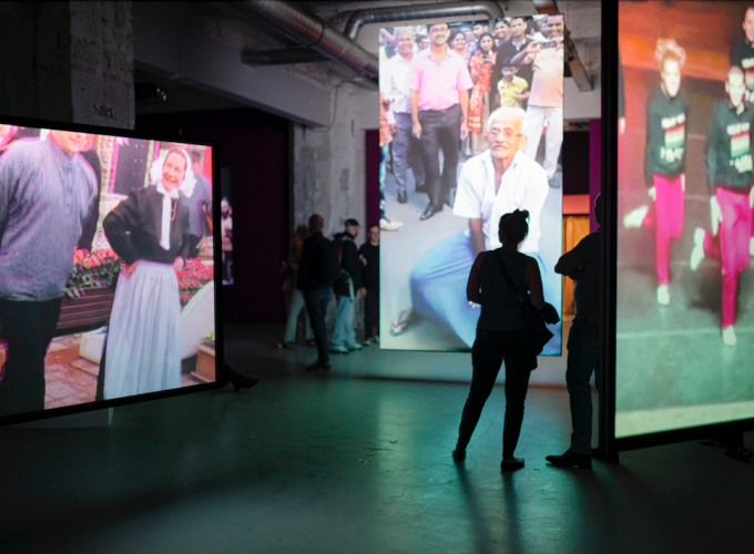 Door de video’s in een constante loop van 4 uur door elkaar af te spelen vervagen de grenzen tussen landen, continenten, culturen, achtergronden en tijdperken